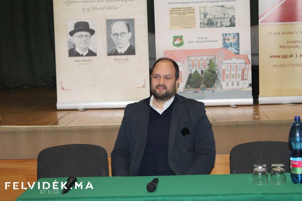 Az előadást megelőzően Andrusko Imre, a Selye János Gimnázium igazgatója köszöntötte a vendéget, röviden ismertetve Nacsa Lőrinc szakmai pályafutását és közéleti szerepvállalását.