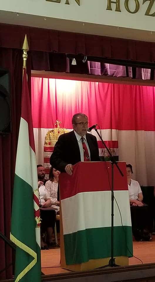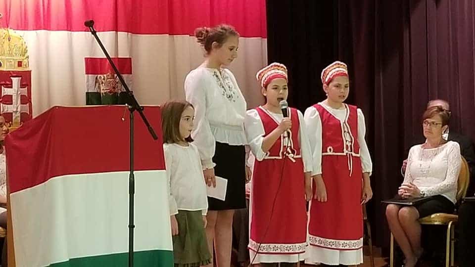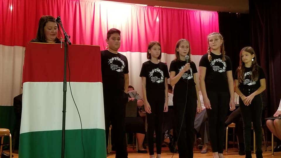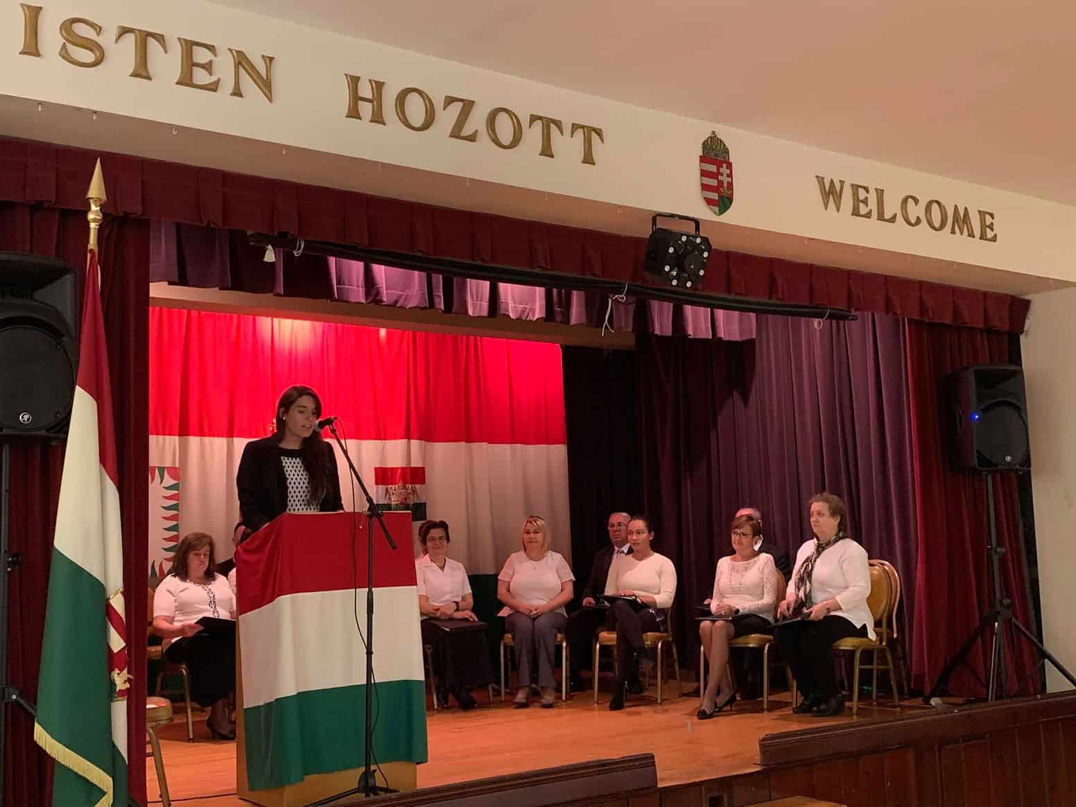 Ismeretlen szerző, Üzenet Veszprémből versét adták elő a Csík Hágó Magyar Iskola és Óvoda tanulói. Az ifjú diákok után Radics Géza 56-os menekült részletes korelemzéssel és történeti áttekintéssel tette érthetőbbé az 1956-ban történt eseményeket. Személyes élményein keresztül nagy élettapasztalatával fogalmazott meg mélyenszántó gondolatokat az akkori nemzetközi helyzetről. A hallgatóság nagy érdeklődéssel követte előadását.