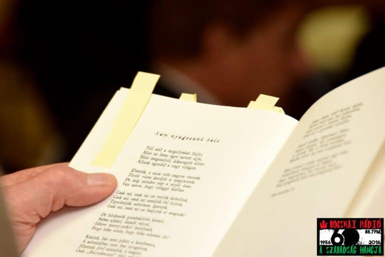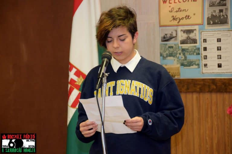 Tamásy Viola és Dr. Vásárhelyi Zoárd hazafias hangvételű verseket szavaltak, miután Dr. Fazekas László nyugalmazott baptista lelkész lépett a pódiumra, hogy ünnepi beszédét elmondja a hallgatóknak.