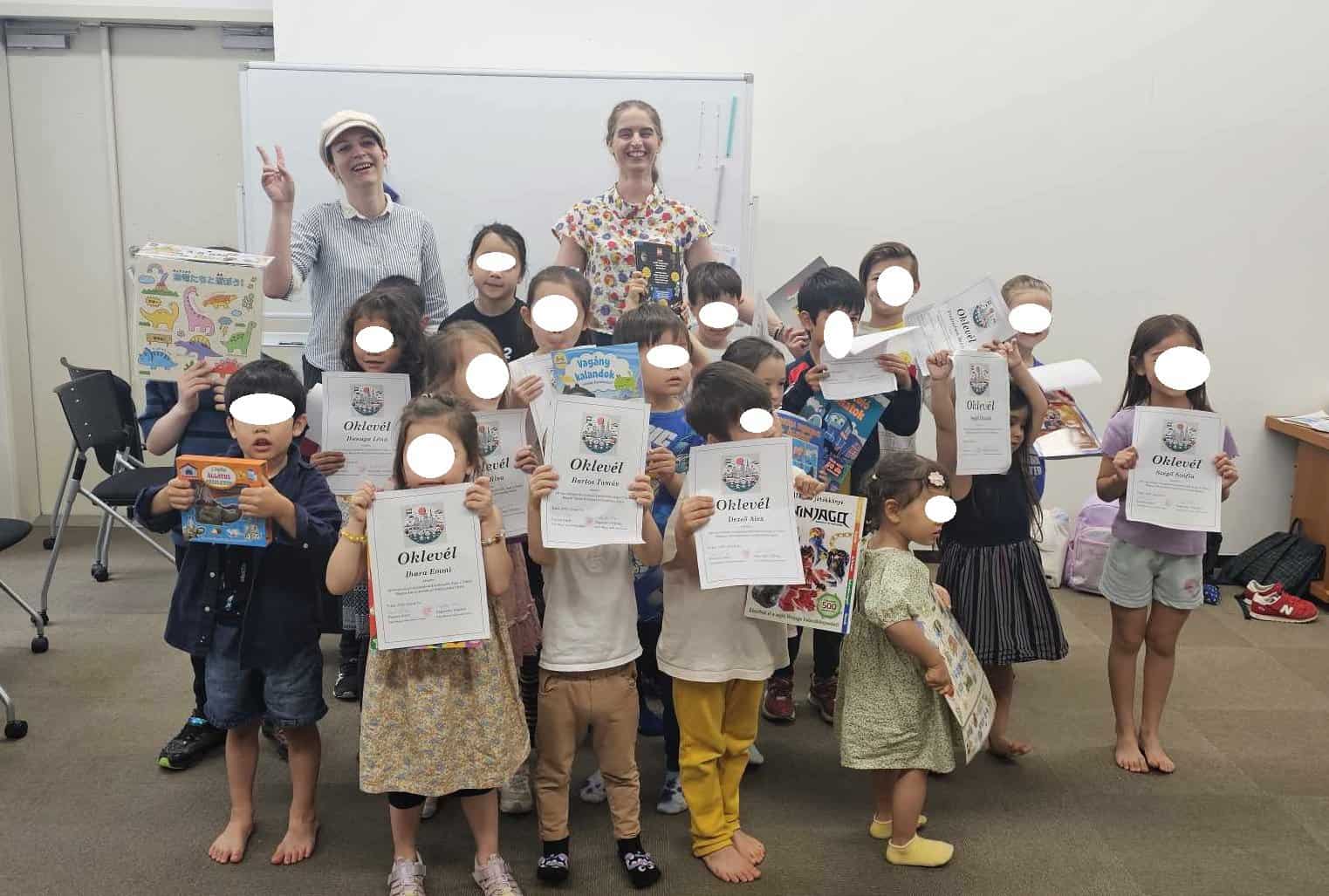 Nem, a hozzám járó gyerekek közül csak egy volt diplomata gyerek van. Valahogyan elkerültek bennünket. Az itt élő magyar (származású) gyerekek legfeljebb 10 évesek. Kb. 7-8 éves volt a legidősebb, amikor elindult az iskola. Jelentkeztek idősebbek is, de csak egy-kettő, így őket nem tudtam csoportokba bevonni. A 18 éves sráccal egyszer-kétszer találkoztunk, beszélgettem vele magyarul, de aztán elment egyetemre. A japán iskolarendszer 6+3+3 osztályos, és az ún. Junior High School-os diákok már mind délutáni iskolába járnak, szinte minden nap, akár hétvégén is, és akár este 9-10 óráig is… Mindenféle tárgyból vannak ilyen iskola utáni foglalkozások; arra járnak, amiből szeretnének továbbtanulni, vagy amiből esetleg le vannak maradva. Ezekhez még hozzájön a sport, hétvégi meccsekkel, így az idősebb gyerekeknek már nincs idejük a második nyelvükre, a magyar ilyenkor háttérbe szorul, mert ennyire nem lehet őket túlterhelni. Egyébként a többi ázsiai népnél, tehát a kínaiaknál és a koreaiaknál is ugyanez a helyzet.
