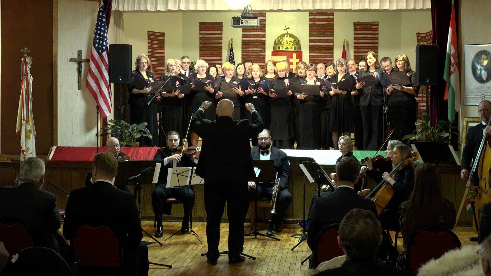 Fazekas Róbert műsorvezető köszöntötte az egybegyűlteket a Szent Imre templom dísztermében múlt vasárnap. A római katolikus egyházközségek plébánosa, Bóna Richárd atya egy imával nyitotta meg az ünnepet, majd pedig az egyházi kórus szolgálata következett. Különleges formáció állt össze: Cleveland hét magyar templomának, a református, katolikus, evangélikus, adventista és baptista közösségeknek a képviselői énekeltek együtt. A szabadságról és az isteni gondviselésről szóló dalokat Dr. Marton Máriusz, a Hetednapi Adventista Gyülekezet lelkipásztora vezényelte le. A lelkész úr saját produkcióval is készült: Itthon című szerzeményét adta elő gitárkísérettel.