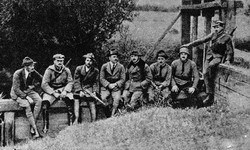 A képnek története van: Rozs József, mint a térképhelyesbítők egyik tagja elsőként vette fel a harcot az Oroszvég felöl támadókkal. Rozs József rettenthetetlen bátorsága magával ragadta a védőket. Az élen érkező cseh páncélkocsira felugrott, és a vezető figyelő nyíláson át belőtt. A páncélkocsi árokba fordult és megrekedt. Az erről zsákmányolt fegyver és lőszer volt az első komolyabb lehetőség a támadás visszaverésére. A küzdelem során Rozs József hősi halált halt. (Rendjel.myhunet.com)