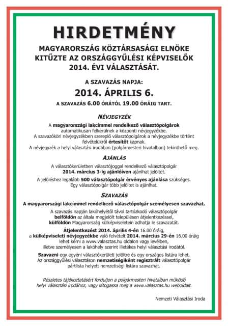 szavazás napja | a magyarországi szavazást megelőző nap (szombat): 2014. április 5. |