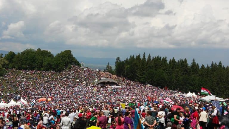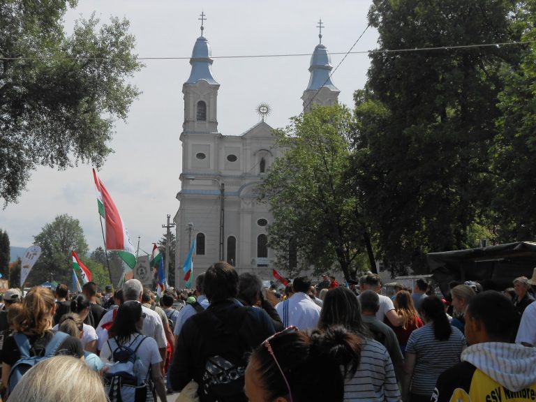 19-én részt vettünk a csíksomlyói búcsún ami idén 451. alkalommal került megrendezésre. A 850 fős csoportunkkal együtt zászlók alá rendeződve vonultunk a csíksomlyói kegytemplomhoz, majd a Kis- és a Nagysomlyó-hegy közötti nyeregbe a Hármashalom oltárhoz, hogy ott a több százezer magyarral együtt meghallgassuk a szentmisét – amit a magyarul tökéletesen beszélő Marian Adam Waligóra lengyel szerzetes tartott -, majd együtt énekeljük el a magyar és székely himnuszt.