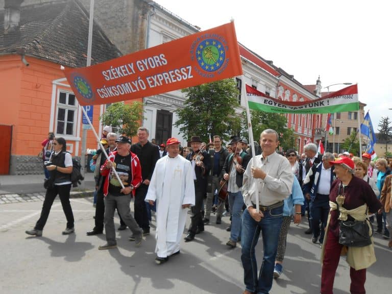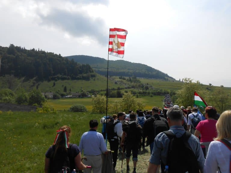 Május 18-án hajnalban indultunk el Csíksomlyóra a kb. 500 meter hosszú, 850 zarándokot szállító Szent István-mozdony húzta Csíksomlyó Expressz és a Székely Gyors nevű zarándokvonattal.