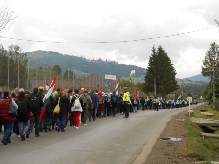 Innen Csíkszentsimonra mentünk. Gyimesbükkről útközben a mozdonyunk az utat végigdudálva köszöntötte az út mellett álló és zászlókkal integető erdélyieket.