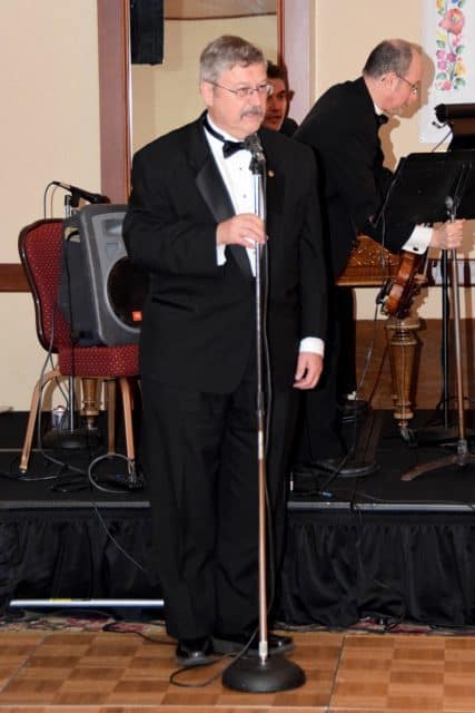 Külön megtiszteltetés volt számunkra, hogy a bál ceremónia mesterei a Cserkész Rádió szerkesztői, Ország Éva és Baki Tibor lehettek. A bál alatt a Harmónia zenekar szolgáltatta a jó hangulathoz a talpalattvalót, majd éjfélkor a Clevelandi Cserkész Regös Csoport fiatalabb tagjai bemutatták a szokásos palotás táncot.