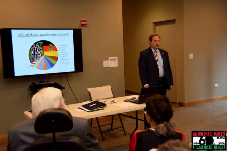 Ezt követte dr. Márkusfalvi-Tóth Ádám beszámolója a főkonzulátus konzuli ügyeiről, melyben örömmel jelezte, hogy az a személy, aki a tavaly először adta be az állampolgársági kérelmét az itteni konzulátuson, már meg is kapta a magyar állampolgárságot. Más, a new yorki konzulátustól átvett ügyek is szépen, rendben révbe értek már. De felhívta a figyelmet, hogy a chicagói jelenlét mennyire megkönnyíti a régióban élő magyarság ügyintézését, illetve gyorsítja is az eljárási folyamatokat.