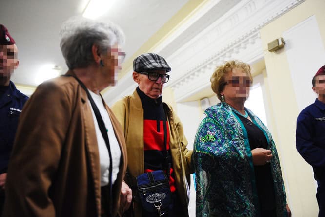 Biszkut a mai tárgyalásra is két idősebb hölgy kísérte el. A 93 éves vádlott botjára támaszkodva, a két nőbe kapaszkodva sétált el a székéig. A bíró ezúttal megtiltotta a tárgyalás élő közvetítését.