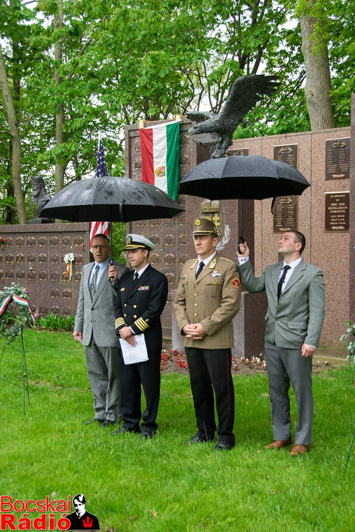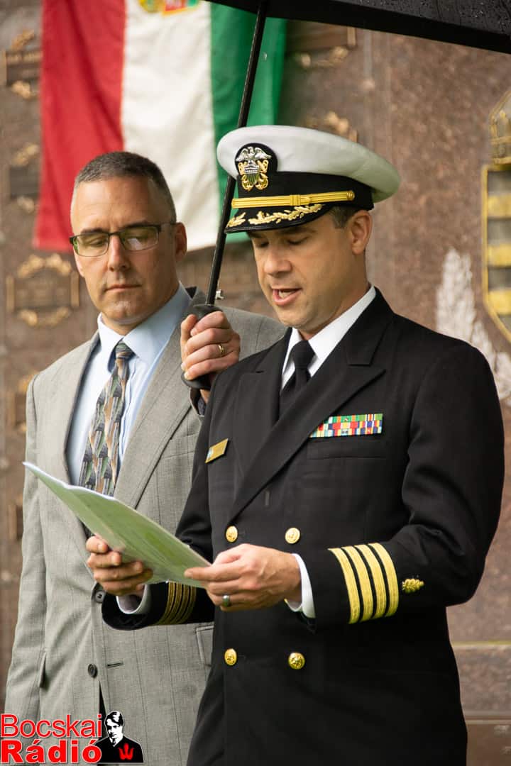 A műsorvezető záró szavai után a közösség a Hősök Emlékművéhez vonult, ahol kellő tisztelet mellett Dr. Hargitai István amerikai egyesült államok haditengerész sorhajókapitány (Captain) olvasta fel azon magyar származású elhunyt katonáknak a neveit, akik az amerikai hadseregben szolgáltak. Utána a Kapitány Úr és Hess ezredes Úr megkoszorúzta a Hősök Emlékművét, majd eldördültek a tiszteletadás puskalövései.