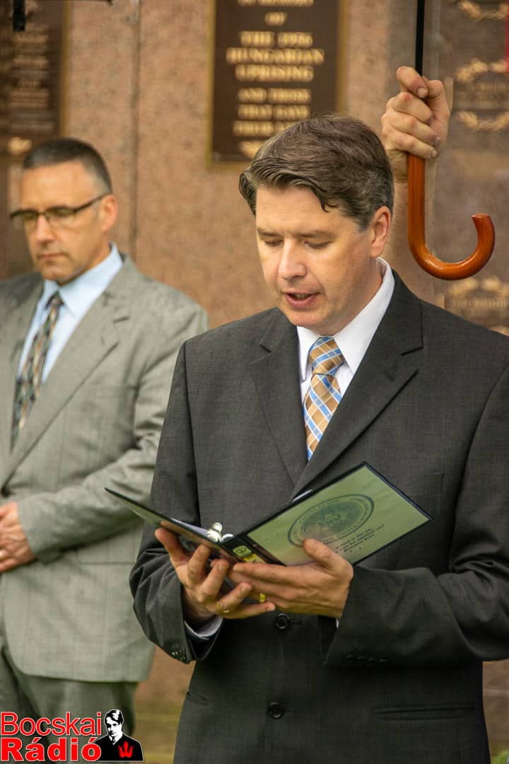 Mindezek után az elnök úr megköszönte a 60 éve működő MHBK csoportnak, hogy Clevelandben minden esztendőben méltó módon megemlékezik a háborúk áldozatairól és az 56-os szabadságharc hőseiről.