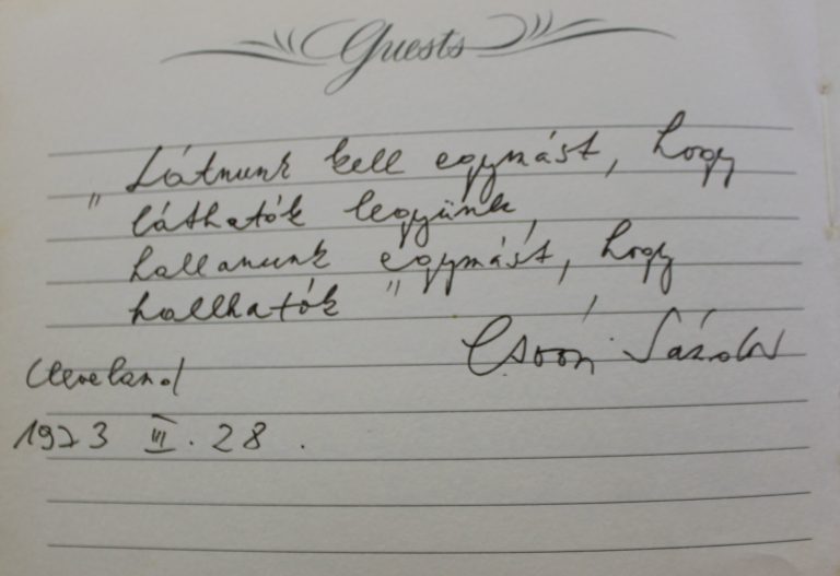 Hogyan is írhatnánk tehát hitelesen egy család legendás vendégszeretetéről, több évtizedes közösségi, szervezői aktivitásáról anélkül, hogy azt személyesen meg ne tapasztaltuk volna mi magunk is? Egy szétszórtságban élő kiválóság magyarságért tett erőfeszítéseiről anélkül, hogy mi magunk ne vállaltuk volna egy időre legalábbis az önkéntes száműzetést a szétszórtságban élő magyarjainkért? A Kőrösi Csoma Sándor Program által tehát a diaszpóra magyarságért elköteleződve érkeztem szétszórtságba, tudásomat és munkámat nekik szentelve. A néprajztudományban ismert kifejezéssel élve pedig, mondhatni „résztvevő megfigyelőként” lettem vendége e háznak, s élveztem azt a bizonyos, a vendégkönyvek lapjain oly sokszor emlegetett vendégszeretetet.
