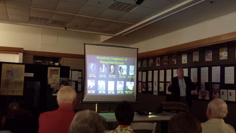 Dr. Michael Miller átvezetett Berény Henri, Jakobi Viktor, Jarno György, Kálmán Imre, Lehár Ferenc, Rényi Aladár, Romberg Zsigmond, Schwartz Jenő, Szirmai Albert, Vecsey Armand munkáin és amerikai pályafutásukon. Megnyitó beszédében kiemelte Kálmán Imre és Lehár Ferenc munkáit, amelyek nagy befolyással voltak a Broadwayre majd a Hollywoodi filmgyártásra.