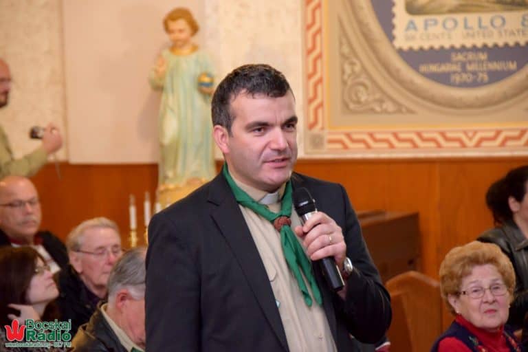 Jézus születésének bibliai idézetével kezdődött a Clevelandi Magyar Cserkészek karácsonyi ünnepsége december 18-án a Szent Imre Római Katolikus Magyar Templomban. A fellépő gyerekek szülei, rokonai és a clevelandi magyar közösség jelentős része gyűlt össze a nagy múltú templomban, hogy a magyar cserkészek ünnepségét megtekintsék. Bizony színvonalas műsort állított össze Pigniczky Eszter, Horváth Judit és Török Dancsó Ádám a Kőrösi Csoma Sándor program ösztöndíjasa. Az egy órás műsor alatt a közönség hátradőlhetett, élvezhette a közelgő karácsony hangulatát, amelyet versekkel, betlehemi pásztorjátékkal és zenével idéztek meg a szereplők. A 34.sz. Zrínyi Ilona lcscs. és a 14.sz. Görgey Arthur cserkészcsapat őrsei váltották folyamatosan egymást a színpadon, hogy a hetek óta gyakorolt műsorszámukat bemutassák. Rendkívüli magabiztosságról tettek tanulságot a szereplők, kicsiktől a nagyokig. Valószínűleg nemcsak én gondoltam vissza saját gyermekkorom karácsonyi szerepléseire, hanem a vendégek közül talán többen is. Eszembe jutottak a műsorok készülődéseinek gyötrelmei és szépségei, a színpadi szereplések izgalmai. A cserkészek már profi szereplők, hiszen a clevelandi magyarság ünnepségein mindig megemlékeznek egy-egy műsorral, s nem is láttam rajtuk a zavart vagy az ijedtség nyomait. Nagyszerű műsort élvezhettünk együtt, amelyet természetesen megkoronázott a legkisebbek, az óvodások előadása és a vezetők betlehemi pásztorjátéka. Nem is biztos, hogy igazságos lenne a szereplők kiemelése, mert mindenki előadása nagyszerű és szívet melengető volt. Pigniczky Eszter mint egy karmester irányította a folyamatokat, rendezgette a csapatokat, a zenei aláfestésért pedig Török Dancsó Ádám felelt, akinek valószínű az eddig clevelandi feladatai közül az ünnepi műsor levezénylése volt a legnehezebb, hiszen több tucatnyi gyermek énekét kellett vezényelnie és hangszereken kísérnie. A zenészek közül meg kell említeni még Balássy Géza, Balássy Péter, Horváth Judit és Peller Miklós hangszeres kíséretét, hiszen közös zenélésükkel valósulhatott meg a tegnapi ünnep. Nagyszerű érzés volt közösen énekelni az ismert karácsonyi énekeket a clevelandi magyarokkal, azt hiszem kitörölhetetlenül bevésődött emlékezetembe ez az ünnepi együttlét. A műsor végén Mezei András atya köszönte meg a gyermekek színvonalas műsorát, s mondott záróimát.
