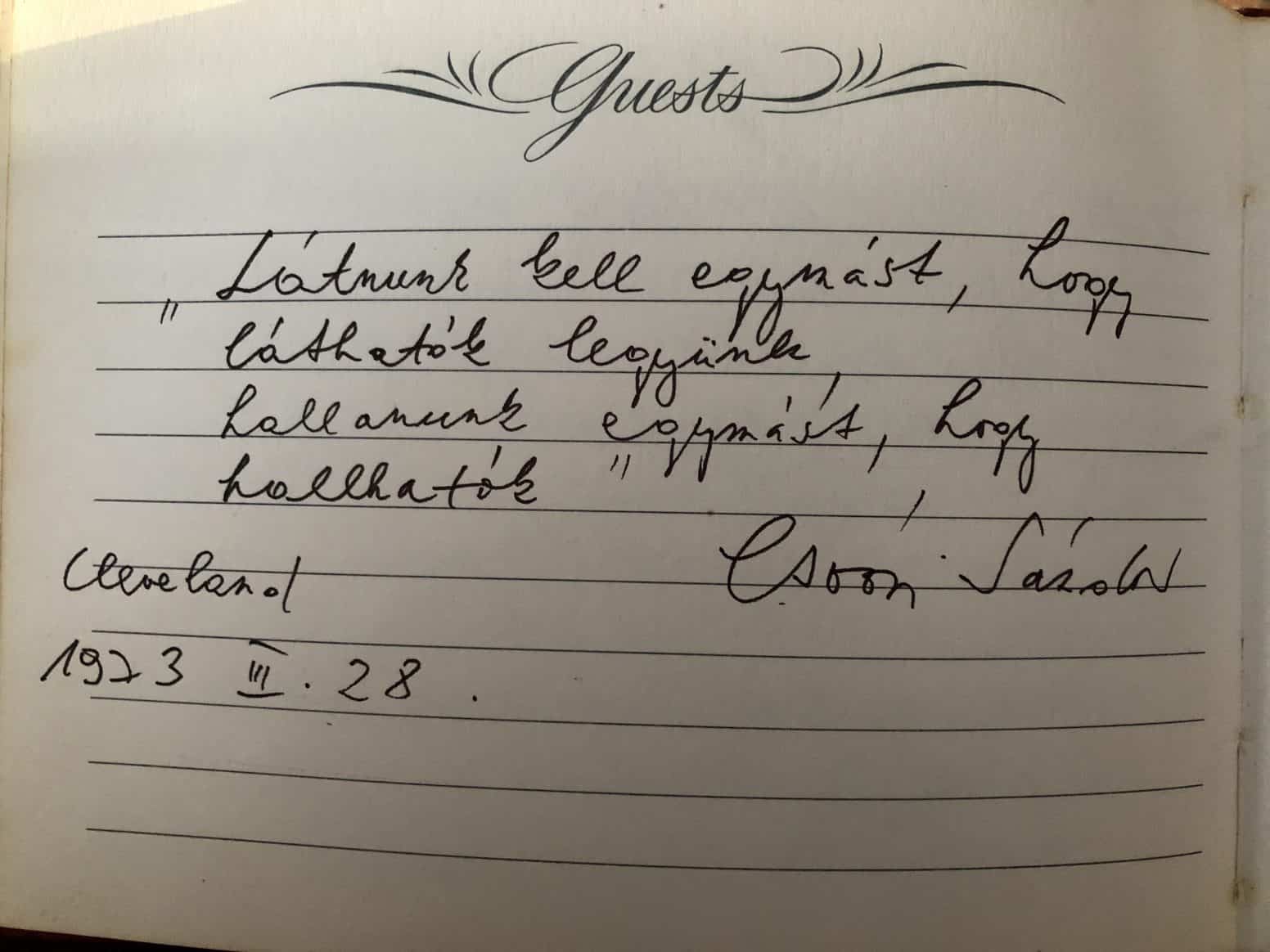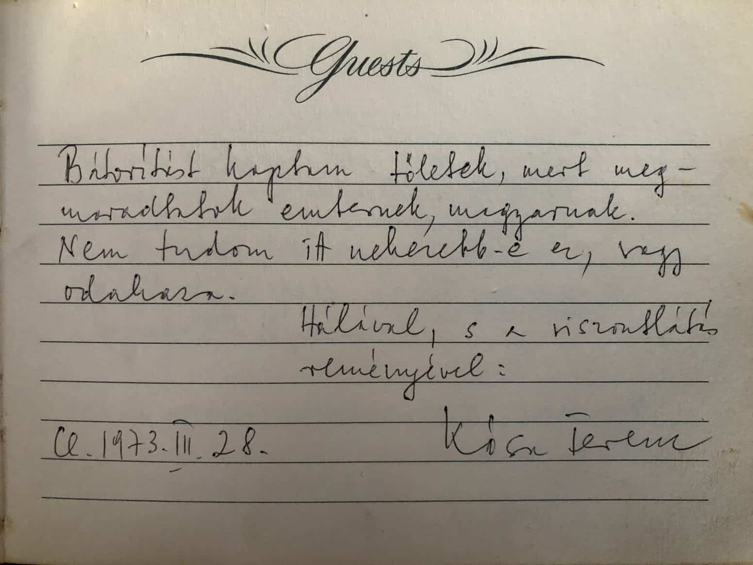 Hiszen néhány évtizeddel korábban, talán pont ugyanabban a székben ültek, amiben én, ugyanazt a vendégszeretetet élvezték amit én, és egészen bizonyosan kezükben volt a vendégkönyv, amelyben ott hagytak egy darabkát magukból, gondolataikból, érzéseikből.