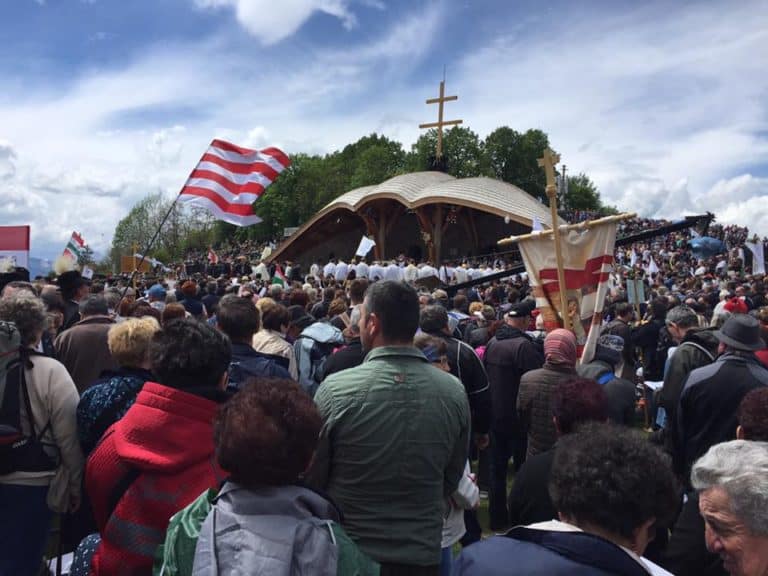 Pünkösd szombatján már mindannyian utazásuk fő célpontjához érkeztek, a csíksomlyói búcsúba, ahol több százezer, a világ majdnem minden tájáról érkezett magyar testvéreikkel együtt élték át azt a felemelő, együvé tartozás érzését, amelyet csak ezen a szent helyen lehet megérezni.