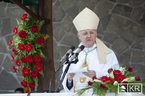 „Nem először járok Székelyföldön, mindannyiszor tapasztalom az itt élő magyarok hűségét Istenhez, a Szűzanyához, a templomhoz és papjaikhoz. Erzsébet szavai Máriához az idei búcsú mottója (Boldog vagy, mert hittél), amelyek arról tanúskodnak, hogy a hit és a boldogság összetartoznak. Milyen szép, hogy két, áldott állapotban lévő asszony találkozik” – magyarázta az érsek, majd, mintegy párhuzamot vonva a jelennel hozzátette, bárcsak Magyarországon és Székelyföldön is nagyon sokszor és gyakran megismétlődne, hogy két vagy több áldott állapotban lévő asszony találkozik. „Nem is fájna a fejünk.”