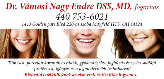 Dr. Vámosi Nagy Endre DDS, MD, fogorvos szeretettel várja minden korosztály betegét, különféle tömések, porcelán koronák és hidak, gyökérkezelés, foghúzás és széles skálájú protézisek igényes és a legmodernebb technikával való kivitelezésének garanciájával.