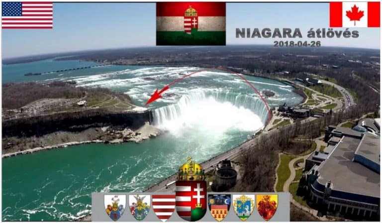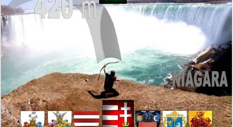 According to hungarianambience.com, after shooting across the Verecke Pass, Archer József Mónus this time tackled the Niagara Falls. “During the performance a beautiful rainbow has been formed above the waterfall, which pointed the way to my arrow. I’ve never seen such a beautiful natural phenomenon like that before” writes Mónus.