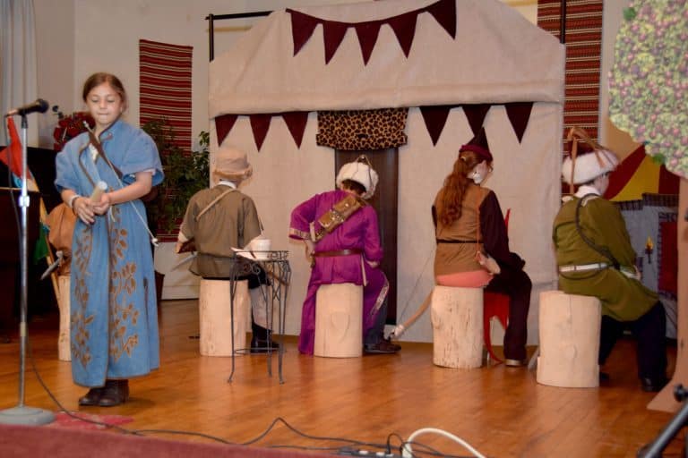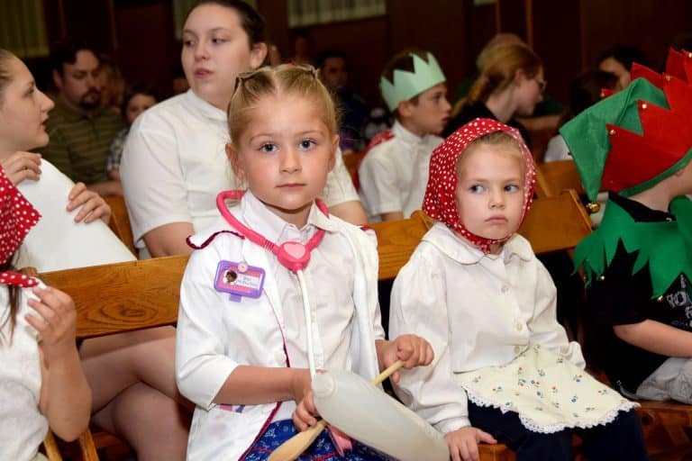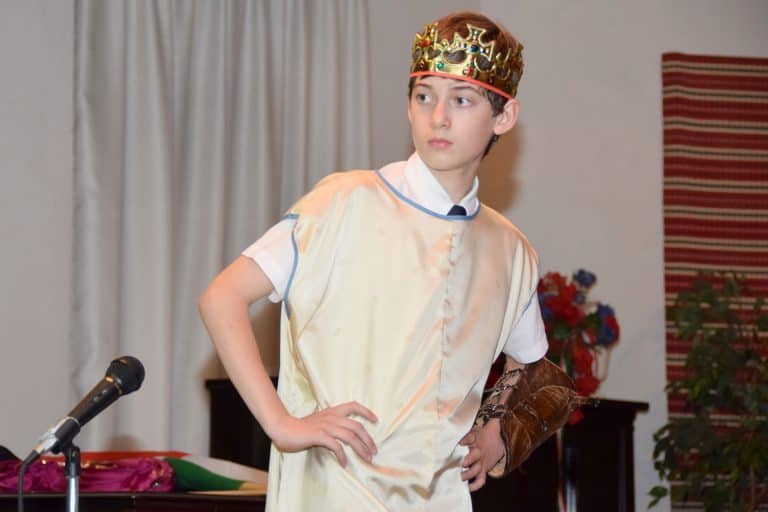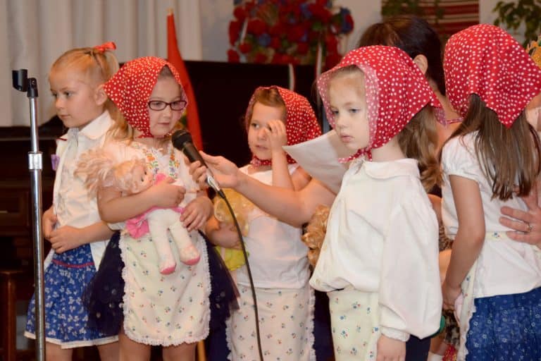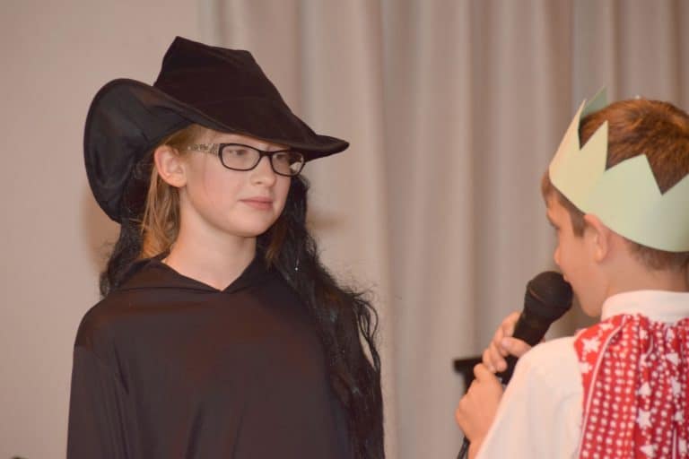 Hétfőn este hatalmas zápor és villámlás közepette megérkeztünk a Szent Imre templom alagsori dísztermében, ahol már álltak a díszletek a színpadon, a hamarosan kezdődő magyar iskola évzáró ünnepségéhez. A gyermekek a kinti ítéletidőből semmit sem vettek észre, mindenki el volt foglalva valamivel. Ki a szerepét ismételgette, ki a jelmezét igazgatta. Mások anyukáktól-apukáktól jövő biztatásokat hallgatták, a legkisebbek is türelmesen várták a kezdést. Ami nem is váratott sokáig magára, Szentkirályi Judit az iskola igazgatónője köszöntötte a tisztelt vendégsereget. Majd Nt. Tamásy Éva a Nyugat-oldali Magyar Evangélikus Egyház lelkipásztora szólt az egybegyűltekhez egy rövid kis imával befejezve a beszédét.