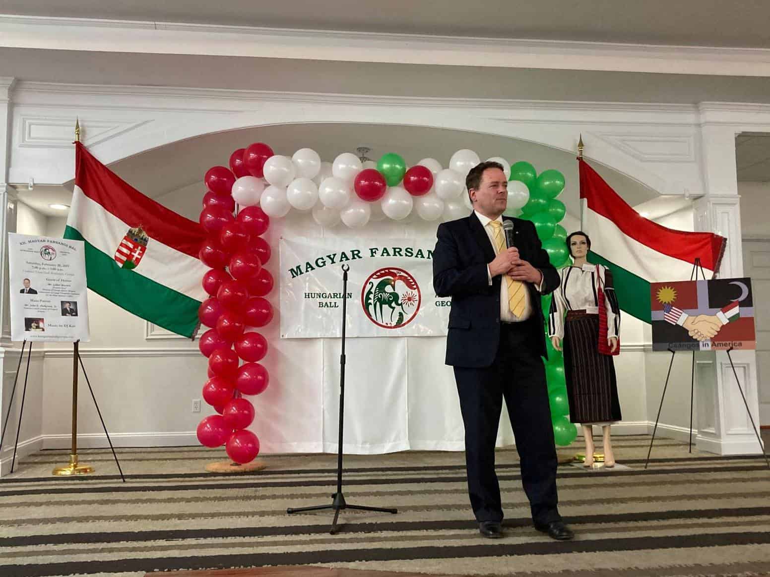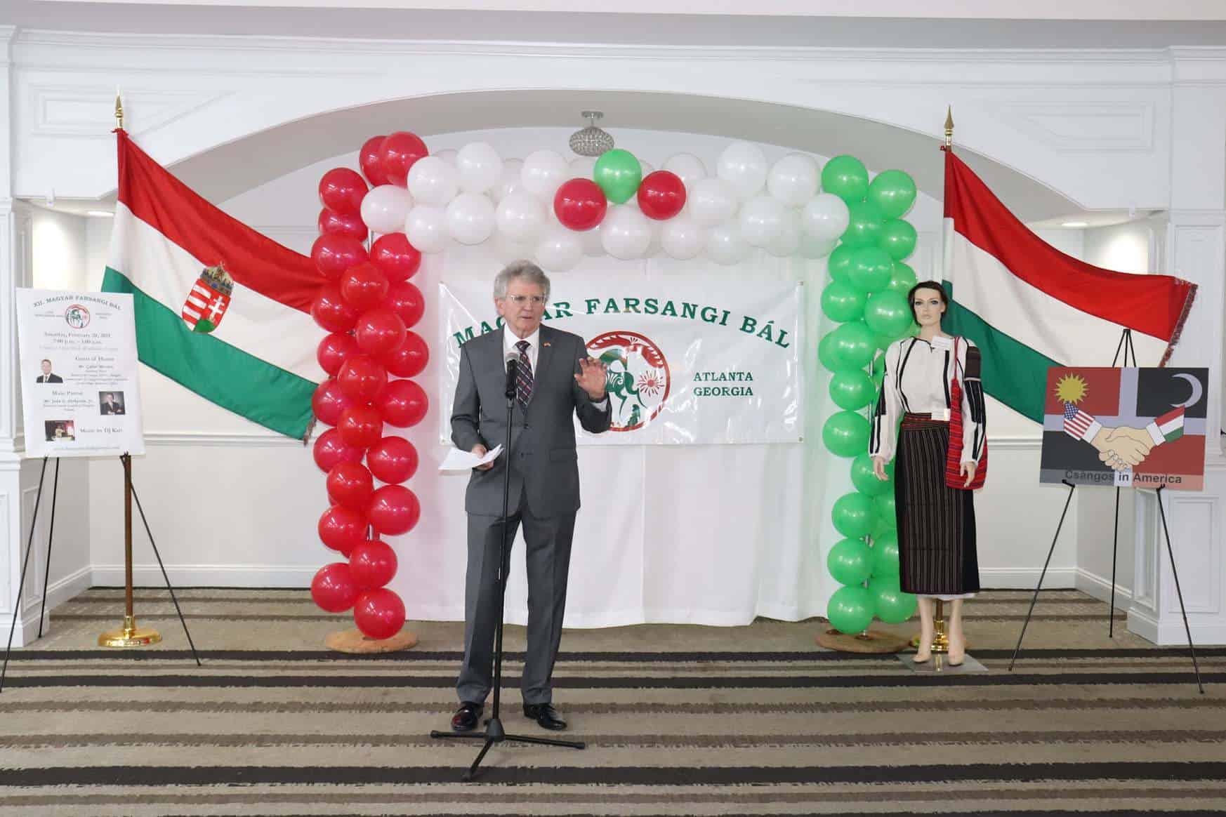 „Színvonalas műsorral, finom magyar ételekkel, magyar desszertekkel, magyar zenével nagyon jó hangulatban telt a bál.” – mesélte rádiónknak Tulipán Sarolta. Az est fővédnöke John E. Parkerson tiszteletbeli konzul volt, díszvendégként pedig Missura Gábort, a csángó-magyar együttműködésért felelős miniszterelnöki megbízott titkárság vezetőjét köszönthették, aki Magyarországról érkezett. Missura úr előadása a csángó magyarokról sokak ismereteit bővítette, érdekes és tanulságos volt a közösség számára. Megható pillanat volt, amikor Georgia magyarjai fennállva, első alkalommal elénekelték rendezvényükön a csángók himnuszát.