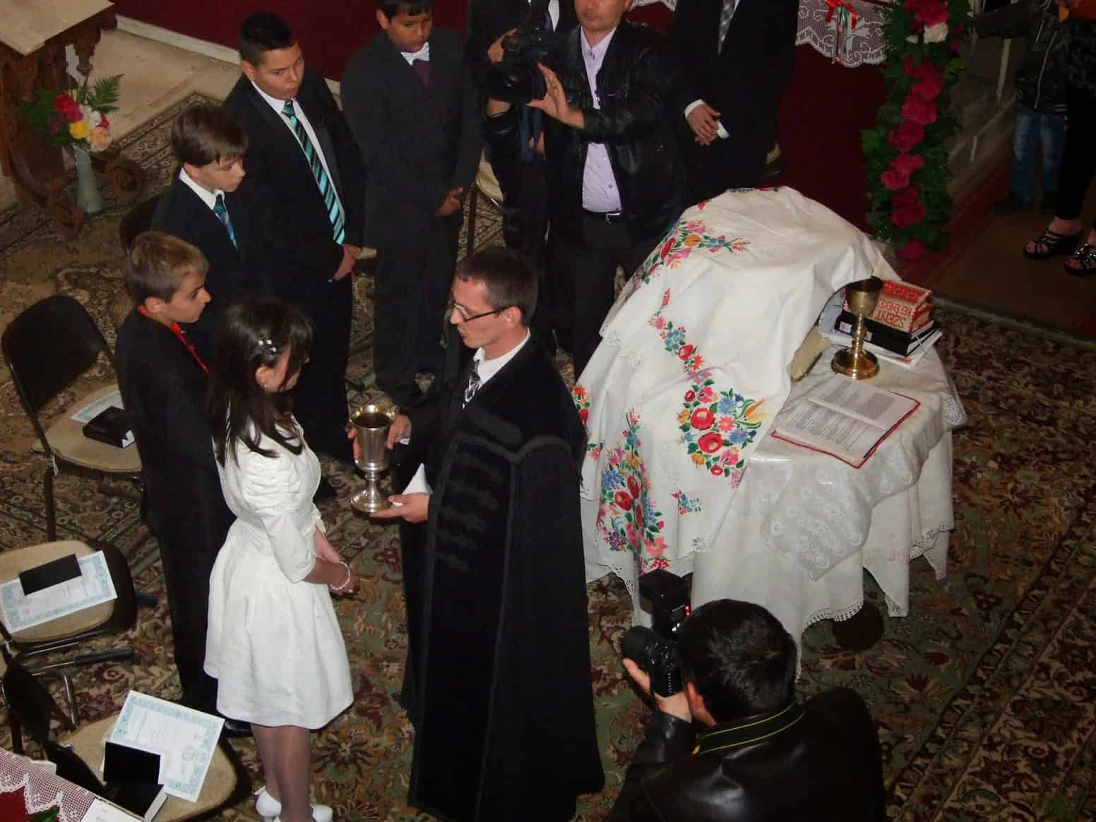 Nyilván ebben is Gondviselés keze volt, hiszen semmi kötődésem nem volt a városhoz. Csak utólag tudtam meg: egy négyezres településről van szó, ami sós tavainak köszönhetően kapott (fürdő)városi rangot még a régi rendszerben. Kb. tíz százaléka magyar (kb. 350 református és 50 katolikus lélek). Feleségem tanítónő lett a helyi iskola magyar osztályában. Voltak nehéz évek, amikor egyszerre öt osztályt – az előkészítőtől a negyedik osztályig – kellett tanítania. Beatrix lányunk születése után már nem voltak születések a magyar közösségben, idővel bezárt az óvoda. Az utolsó két évünk kemény küzdelem volt a magyar osztály megtartásáért, bár a román igazgató mindent megtett annak érdekében, hogy életben tudjuk tartani, de miután eljöttünk, megszűnt a magyar osztály. Viszont mi még pont azt az aranyidőszakot kaptuk el, amikor sok gyerek volt és rengeteg munka zajlott a gyülekezetben; visszatekintve úgy érzem, a legjobb időszakban voltunk ott. Érkezésünkkor még összesen közel 40 gyermek volt az ifjúsági és a vallásórás csoportokban. Amikor átvettem, papíron 315 lelkes volt a vízaknai református gyülekezet, ma már tudtommal háromszáz alatt van a létszám, mert nem születtek gyerekek. Most kezd egy kicsit újra nőni a gyerekszám. Van némi középkorosztály és fiatalság is, a közeli Nagyszeben munkahelyeket tud teremteni, ami nagy segítség a vízaknaiaknak, viszont nem könnyű a megélhetés, és a mai fiatalság egyre kevésbé vállal több gyereket, kettőnél többet nagyon-nagyon kevesen.