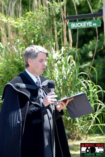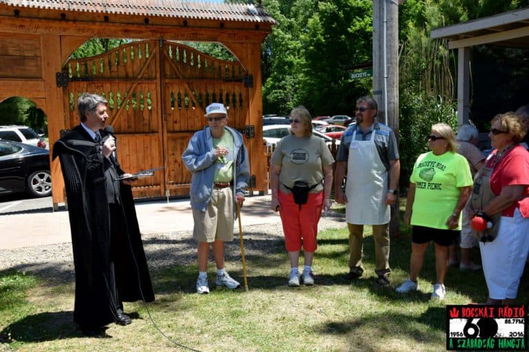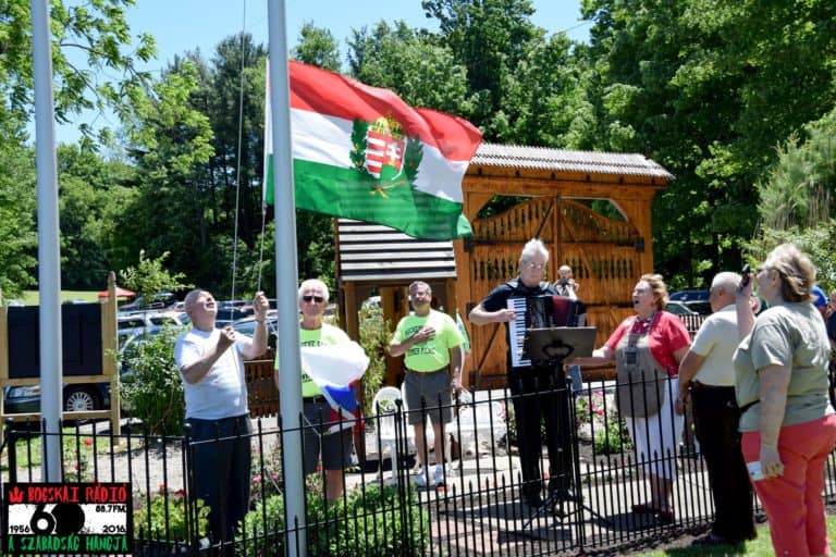 Délután két órakor zászlófelvonással indult a program megnyitása, amerikai, magyar és szlovák színek díszítették a magas zászlórudat, amit aztán e három nemzet himnuszának az eléneklése követett. Nt. Krasznai Csaba ünnepélyes és szívhez szóló szavaival dedikálta a kapu mögötti tégla járdát, melyekbe a támogatók nevei be lettek gravírozva tanúskodva a pénzgyűjtési akció momentumáról és annak folytatásáról a park épületeinek nagyszabású felújítására.