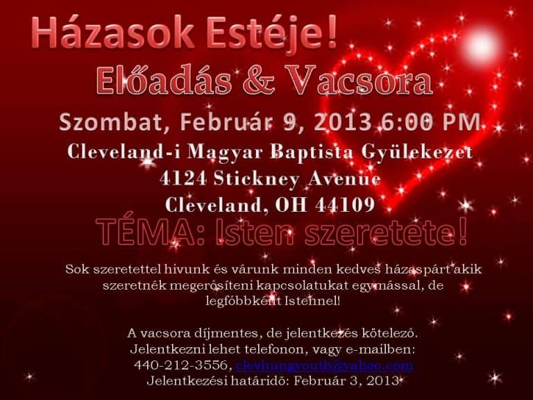 A vacsora díjmentes, de jelentkezés kötelező.