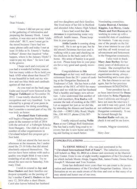 A hirami klub hírújságába olvastam, hogy Ernie Mihályt fölterjesztették a Cleveland Nemzetközi Dicsőségfal listájára, angolul “Cleveland International Hall of Fame” díjra. A beiktatási ceremónia Május 12-én lesz egy vacsorával egybekötve a Marriot Key Centerben. Ernie Mihály mellett még nyolc nagyszerű ember kapja meg ugyanezt a díjat. Az ő nagylelkűsége nyomán került a Magyar Kultúrkert felújításra és egy gyönyörű szép, rendezett környezetben várja az odalátogatókat.