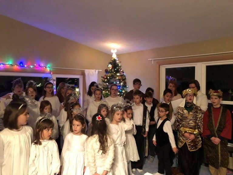 A cserkészcsapat kántálási körútjának utolsó állomása, a csapat egyik vezetőjének, Dragan-Chirila Júlia és férje Marshall Donnak a hétvégi háza volt, ahol hatalmas szeretetvendégség fogadott minden cserkészt és családjukat. Az igazi kántáló hangulatot megidézve a cserkészek itt már kint az utcán énekeltek, gyertyákkal a kezükben, betlehemes játékukat pedig bent a gyönyörűen feldíszített karácsonyfa előtt adták elő. A záróének után mindenki felmelegedhetett és kedvére falatozhatott a sokféle ételből és desszertből, a gyerekek estig játszhattak a karácsonyfa körül, a felnőttek pedig egy kis forralt bor társaságában beszélgethettek az elmúlt évről és a közelgő ünnepekről.