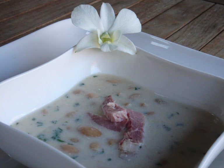 Az olajat felforrósítjuk és a liszttel, pirospaprikával könnyű rántás készítünk. Felöntjük a hideg sonkalével és állandó keverés mellett felforraljuk. Tegyük bele az aprított zöldségeket, hagymát, babérlevelet, ízesíthetjük leveskockával. Amikor a zöldségek megpuhultak válasszuk szét a tojások fehérjéjét és sárgáját és csak a sárgáját tegyük óvatosan a levesbe. Pár perc forralás után zárjuk le a tüzet és amikor egy kicsit kihűlt óvatosan tegyünk bele tejfölt, hogy össze ne ugorjék. Tegyük bele a főtt füstölt sonka kockákat. Ízesíthetjük kevés ecettel, díszítsük zöld petrezselyemmel és tálaljuk pirított zsemlekockákkal.