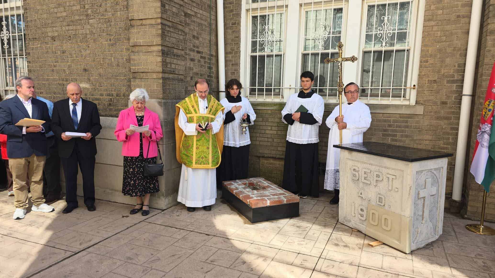 „Jézus Krisztus az igazi sarokkő, akire életünket építeni kell” – fogalmazott Bóna Richárd atya, a Szent Imre-templom plébánosa. A régi időkben hagyományosan a templomok építésekor a sarokkövet áldással látták el, hogy Isten áldása kísérje az építkezést és a közösség életét.