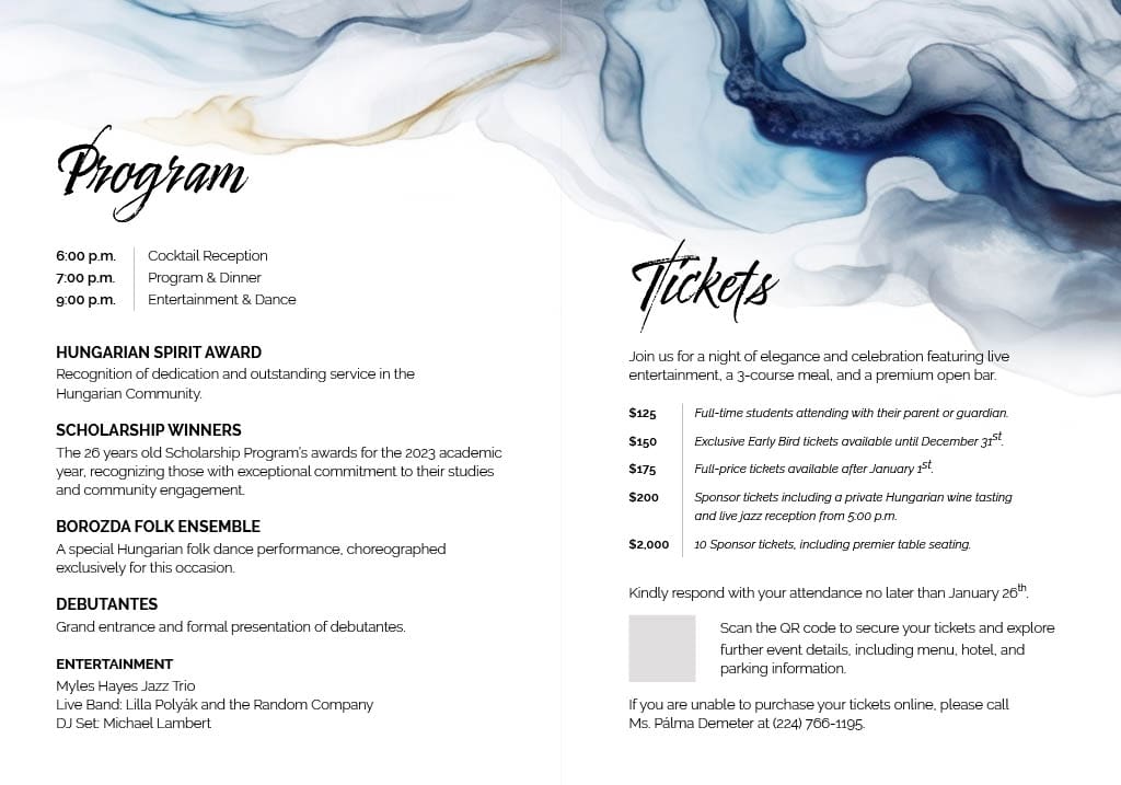 A bál február 10-én, szombaton kerül megrendezésre a Westin O’Hare hotelben, és a szervezők már szinte csak az utolsó simításokon dolgoznak. Ami a programot illeti: sok mindent megtartanak a korábbi évek forgatókönyveiből, de újítások is várhatók. Ezek mibenlétét nem fedte fel a klub elnöke, meglepetés. Ahogy egyelőre azt is homány fedi a nagyközönség előtt, ki lesz az idei díszvendég, egyben az ünnepi szónok.