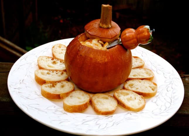 Amikor esszük a sütőtök fondüt, kaparjunk a sütőtök húsából is a kenyérre! Annyira jó!