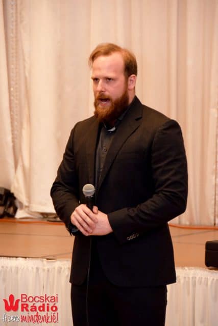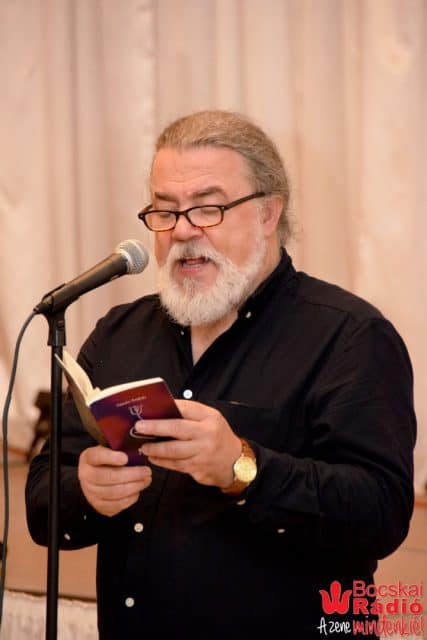 Egy pár gyönyörű dal után, a második előadó, Simon András grafikus művész és költő lépett a mikrofon elé, beszélve ars poétikájáról, amit röviden így foglalt össze: „Isten kegyelme faragott művészt belőlem”. András elszavalt két gyönyörű versét, melyben egy költői játékosságnak köszönhetően csak „e” magánhangzók voltak. „Szerelmed kegyelem” majd a „Jer, serkenj fel” című költeményekkel nyűgözte le a hallgatóságot. A versek után a csángó földön jól ismert tilinkó furulyával fújt el egy népdalt.
