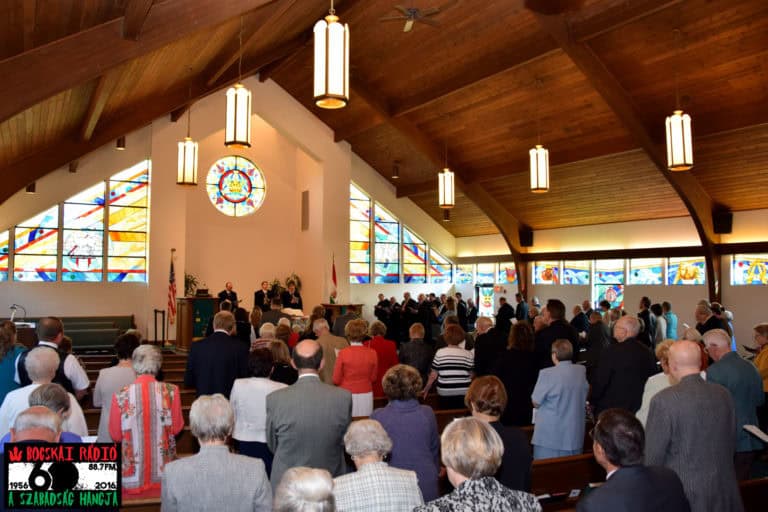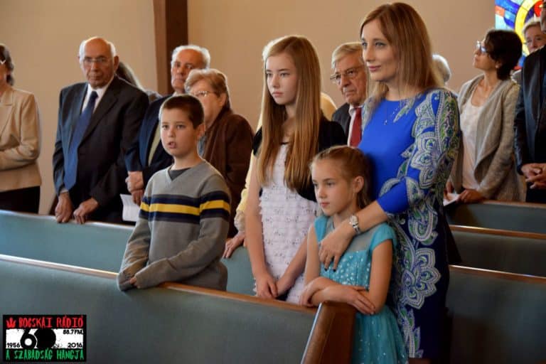 Az első padban ült az ünnepelt családja, azaz kedves felesége Beáta és három gyermekük. Az áldást Ft. Medgyesi Lajos és Ft. Ludwig Koloman lelkipásztorok tolmácsolták. Az amerikai és magyar himnusszal záródott az ünnepi istentisztelet.
