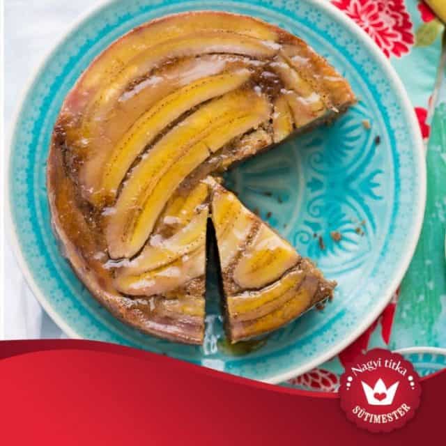 A tojásokat, a porcukrot, a puha vajat, a nagyon érett banánt és a vaníliát alaposan kikeverjük, majd elvegyítjük benne a száraz hozzávalókat és a joghurtot. A sütőforma aljába vágunk egy korongot sütőpapírból. Ezután a kisebb darab puha vajjal alaposan kizsírozzunk a tortaforma alját és oldalát, majd az aljába csurgatjuk a mézet. Az éretlenebb banánokat hosszában kettévágjuk, és a mézre fektetjük vágott felükkel lefelé. Rászedjük a masszát, és 140 fokra előmelegített sütőbe tesszük kb. 55-60 percre (mindenképp tegyünk alá egy tepsit, mert kifolyhat). Végezzünk tűpróbát, ha már nem ragad rá a tészta a fogvájóra, készen van. Kb. 15 percig pihentessük a süteményt, majd óvatosan vágjuk körbe éles késsel. A forma peremére fejjel lefelé helyezzünk rá egy nagy tányért, és óvatos, de határozott mozdulattal fordítsuk rá tortát. Akár langyosan is tálalható.
