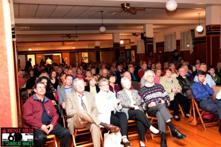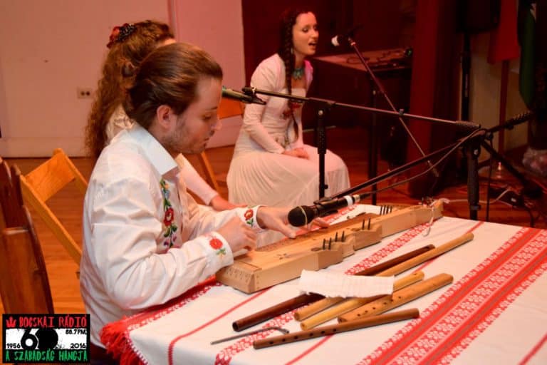 Hétköznaphoz képest a létszám jelentős, az egyik oka ennek Ádám nyolc hónapos városunkban való elképesztő mennyiségű tevékenységének eredménye. A másik ok az a clevelandiek szűnni nem akaró ragaszkodása a magyar népdalhoz, amikor csak tehetik megragadnak minden alkalmat, hogy újra és újra feltöltődjenek ennek a fajta zenének az erejével. Ehhez most Ádám mellett a színpadon két nagyon tehetséges nővérének nagyszerű hangja és hangszereik csodálatos ereje járult hozzá. “Erejét” mondok, mert a nagy-múltú magyar táltos-sámándob erőteljes hangja közt a két hegedű és az esőbot elnevezésű hangszer mellett még más érdekes nevű és szokatlan hangzású hangszerek is megszólaltak. Mindezeket felülmúlta a két lány tiszta, csengő hangja amelynek hatására nem sokat kellett kérlelni a tisztelt közönséget, hogy együtt énekeljenek a művészekkel.