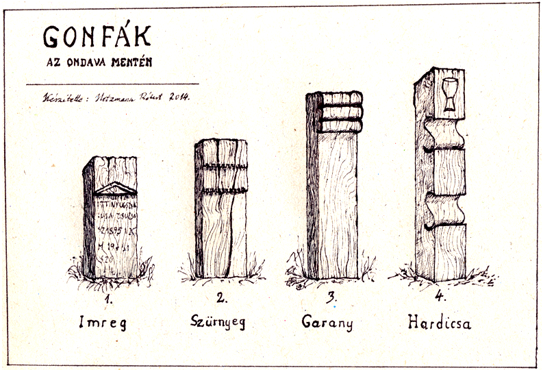 Az Ondava mentén talált gonfák valószínűleg a magyar népi kultúrából ismert gombfákkal azonosak, és meglepő hasonlóságot mutatnak egyes háromszéki temetőkben Balassa István néprajztudósunk által gyűjtött és leírt síremlékekkel. A garanyi gonfa-típus például csaknem megegyezik a bölöni változattal, a szürnyegi pedig az egyik nagyajtai gombfához rokonítható. A szürnyegi forma Bölönben is előkerül. Mindez azért is érdekes, mert a garanyi és a hardicsai lakosság máig székely vagy szerémségi eredetűnek tartja magát (Géczi Lajos kutatásai szerint). Az Ondava menti fejfák a székelyföldiekhez képest kisebb méretűek és faragásuk is sokkal egyszerűbb.