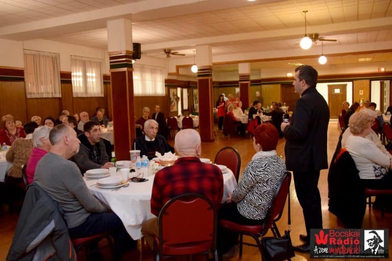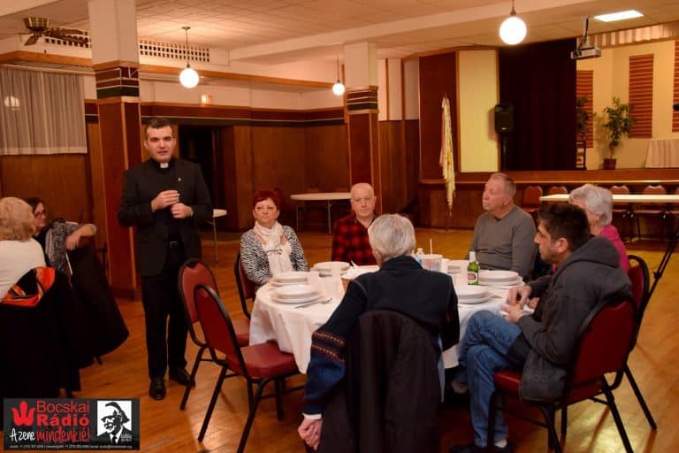 A finom vacsora elfogyasztása közbe körbejárta az asztalokat, beszélgetett mindenkivel, ami alatt halk magyar zene szólt a háttérbe. Egy újabb nagyszerű kezdeményezés Mezei atya részéről, akinek városunkba érkezése óta feltett szándéka egy erős, összetartó egyházközösség újra összekovácsolása. Elmondása szerint a diaszpórában az egyház az egyik legerősebb identitást megőrző intézet, de mellette nagyon fontos szerepet tölt be egy média orgánum is. Itt kimondottan a Bocskai Rádiót emelte ki, megköszönve nekünk is a templom körüli mindenféle segítségünket és a clevelandi magyar közösségben végzett munkánkat is. Megtiszteltetés volt számunkra ott lenni. Köszönjük.