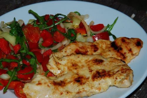 - Eddig a húsunk is megsült, tehát tálalhtjuk a saláta mellé