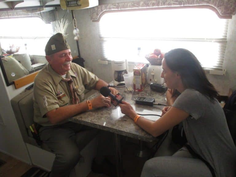 Apáthy Laci bácsi 1953-ban kezdte el a cserkészetet New Yorkban, a 7. sz. Erős Gusztáv cserkészcsapat tagjaként. A magyar negyedben találkozott mindig a Tigris őrs, mesélte mosolyogba Laci bácsi felidézve a múltat. 15 évesen a család elköltözött New Yorkból Floridába, s ettől kezdve az amerikai cserkészetnek volt a tagja, mivel Floridában nem volt magyar cserkészet. Több évtized amerikai cserkészet után most összeálltak végre a feltételek, s megvalósult Laci bácsi nagy álma, nagyszerű cserkész kollégákkal sikerült létrehozni a 9. számú Jámbor Lajos cserkészcsapatot. 30 gyerek és 6 felnőtt alkotja a csapatot. Idén 10 fős csapattal voltak jelen a jubitáborban, amely óriási élmény volt számukra. Minden péntek esete a Venice-i Magyar Házban tartják a cserkész üléseket. Céljuk, hogy továbbvigyék a cserkész élet hagyományait. Nagyon büszke a csapatot alkotó gyerekekre, akik nagyon összetartóak, s a cserkészeten kívül is rendszeresen találkoznak egymással.