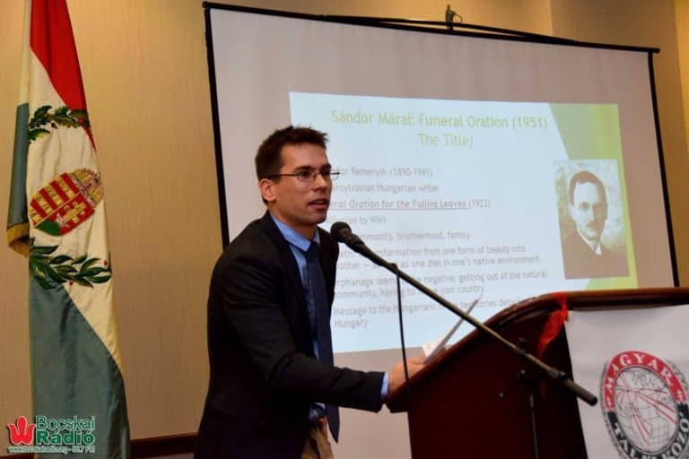 November utolsó hétvégéjén rendezték meg a nagy múltú 55. Magyar Kongresszust, a Magyar Társaság rendezvényét. A Magyar Társaság 1949-ben alakult az ausztriai menekült táborokban, majd Nádas János alapította újra, amikor Clevelandbe került. A Magyar Kongresszus egy konferencia sorozat, amelyben előadások követik egymást a magyar kultúráról, történelemről, aktuálpolitikai kérdésekről. Pénteken és szombaton számos előadás váltotta egymást, épp hogy csak megmozgathatta az ember az elzsibbadt végtagjait, s máris egy új előadás vette kezdetét. Nagy érdeklődés kísérte Dr. Nádasné Gabriella előadását, Dr. Nádas János a Magyar Társaság alapítója, kéziratainak feltárásáról. A délelőtt folyamán Dr. Dénes Mátyás Fulbright ösztöndíjas Magyarságtudat és intertextualitás Márai Sándor „Halotti beszéd” című műveiben című előadását hallgathatta meg a közönség, melyet Bödők Gergely történész izgalmas előadása követett Magyarország az első világháborúban címmel. Délután Széphalmi Jurkó László miskolci iparművész nyitotta meg kiállítását az első világháborúban elesett katonák emlékére. A kiállítótérben könyvvásárt rendeztek, ami jó alkalom volt arra is, hogy az előadások szüneteiben a résztvevők beszélgessenek, pihenjenek egy kicsit a tágas térben, ahol Makk Imre emlékkiállítást is láthatott a közönség. Péntek délután Herner-Kovács Eszter az Emberi Jogok Alapítvány munkatársa tartott előadást a székely autonómiáról, amelyet Simon-Benedek Zsuzsa és Csibi Lóránd a Bocskai Rádió munkatársainak előadása követett, Kik az a székelyek címmel. Az előadók finom székely étellel is kedveskedtek a nagyszámú közönségnek. A juhtúrós, kolbászos puliszka mindenki tetszését elnyerte. Péntek este a zenéjé volt a főszerep. Török Dancsó Ádám vajdasági, palóc és moldvai csángó népdalokat mutatott be citerán, furulyán és kavalon, majd ezt követte a nagyváradi Nagy Kálmán és Nagy Éva koncertje. Barokk és Bartók muzsikát hoztak a vendég előadók Clevelandbe, amelyet vastapssal köszönt meg a közönség.