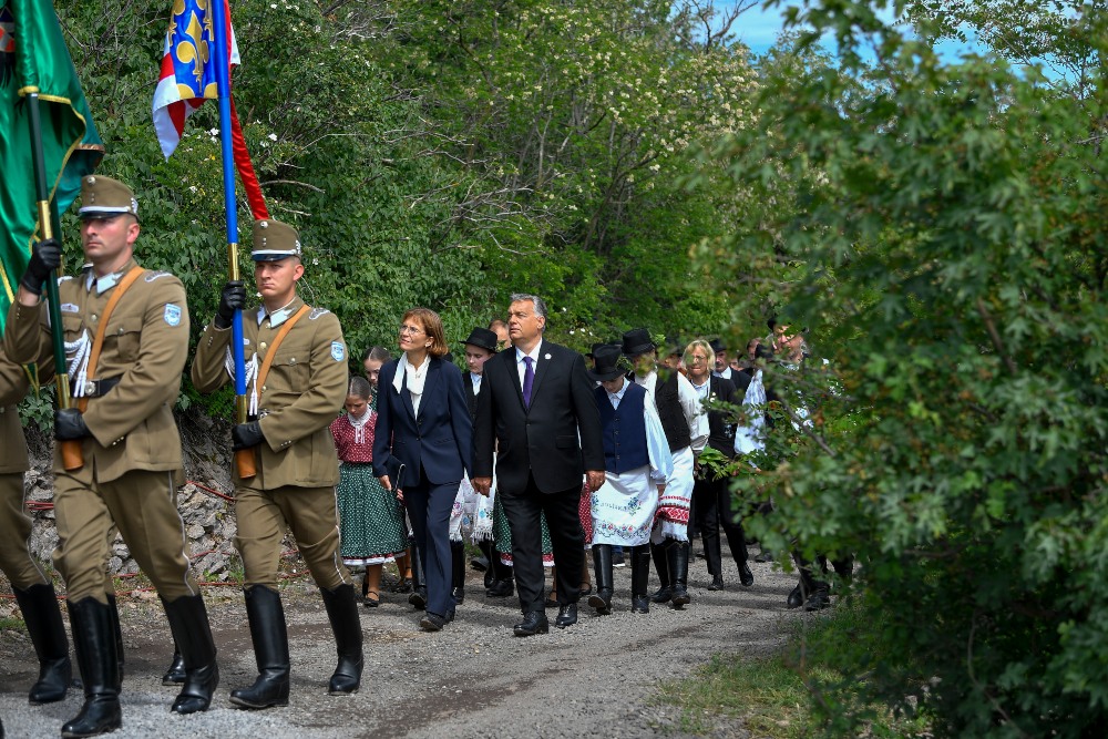 A megemlékezésen a miniszterelnök és a vendégek egy kanyargós erdei úton végigvonultak, és a 14 stációnál, amelyek elcsatolt városokat jelképeznek, színészek szavaltak.