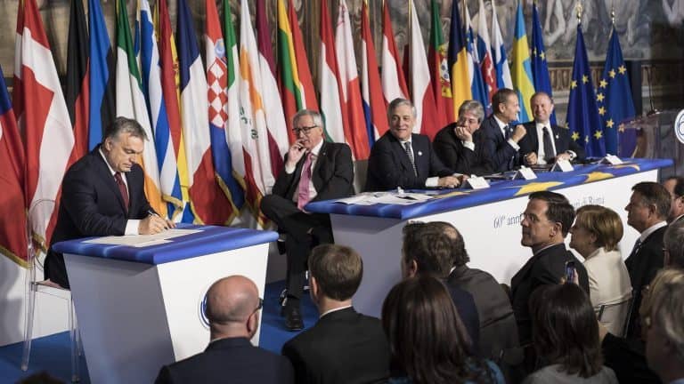 Az állam- és kormányfők azt is kinyilvánították, hogy a jövőben is együtt cselekszenek, “szükség esetén több ütemben és eltérő szorosságú együttműködésben, de mindig ugyanabban az irányban”, összhangban az alapszerződésekkel, és mindig nyitva tartva az ajtót azok előtt, akik csatlakozni akarnak a szorosabb együttműködéshez.