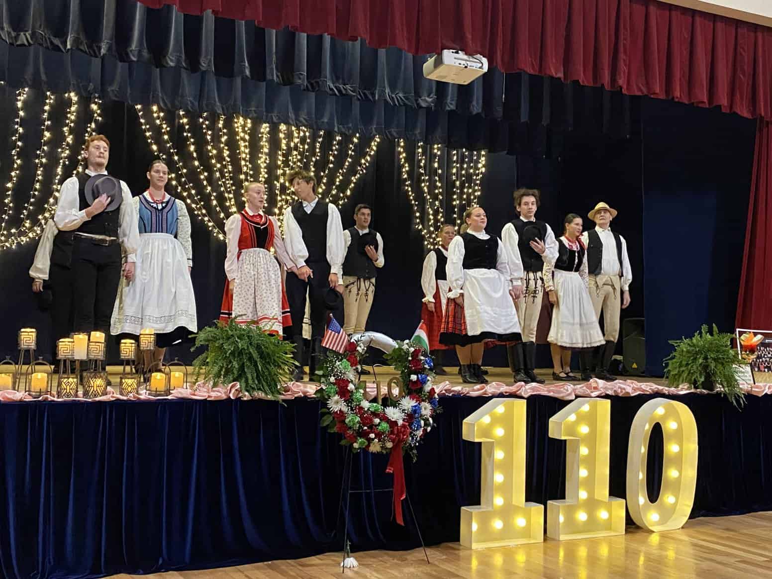 Bott-Varga Denisa, az esemény háziasszonya ismertette az Észak-Amerika-szerte ismert és közkedvelt, az est során a vendégek szívét-lelkét balázstelki táncokkal gyönyörködtető Csűrdöngölő együttes rövid történetét. 1992-ben Sárközi Mária vezetésével alakult meg a magyar klub néptáncsoportja, tehát a klub 30 éve nyújt lehetőséget a helyi fiatalok számára a magyar folklór és néptánc megismerésére. Az együttes felnőtt tagjai 1998-ban társultak a helyi cserkészet regös (népi hagyományápoló) táncosaival, hogy eleget tegyenek a New Brunswick testvérvárosa, Debrecen virágkarneválra szóló meghívásának. A sikeres szereplés után egységes néptánc-csoportként folytatták a közös munkát, a mai napig a klub termeiben gyakorolva. Bár a Csűrdöngölő táncosai cserélődtek az évek során, tagjai immár a klub gyermek tánccsoportjának oktatói, így biztosítva, hogy a magyar néptánc és népzene a jövőben is megmaradjon a New Brunswick-i közösség számára. A későbbiekben bemutatkozó Mákvirág gyermek néptánccsoportról megtudtuk, hogy a heti táncpróbákon az utóbbi években alkalmanként átlagosan 80-100 gyerek vesz részt. Mint mondta, a Mákvirág táncosai fellépéseikkel színesebbé és emlékezetesebbé teszik a klub eseményeit, és hirdetik a magyar kultúra színességét a nemzetközi fesztiválokon is, hiszen táncosai minden évben sikereket aratnak a Pontozó nevű észak-amerikai magyar néptánc fesztiválokon, mind csoportos, mind szólista kategóriákban, és számtalan elismerést nyertek el a magyarországi néptáncoktatók és koreográfusok körében is. Az est során dél-alföldi táncokat adtak elő és a műsort a Csűrdőngölő fellépő tagjaival és Fészer Bandával együtt a hagyományos születésnapi köszöntővel zárták.