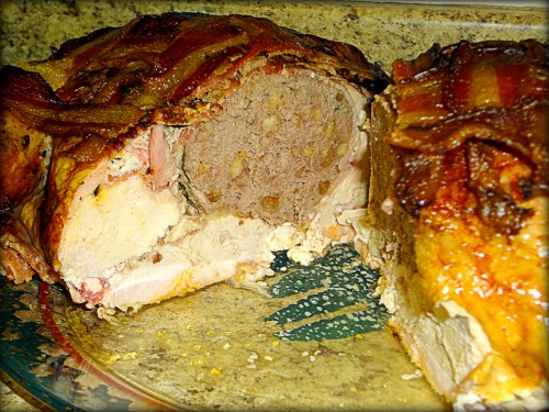 3. Sütéshez a sütőt előmelegítjük 400º F-ra. Közben a pulykát kiszedjük a pácléből, lecsöpögtetjük és betöltjük az előbb elkészített töltelékkel. A szárnyait hústűvel az oldalához rögzítjük, a lábait lazán keresztbe rakjuk, és összekötözzük és bedörzsöljük vajjal. Egy nagyobb tál/tepsi alsó felét vastagon kivajazzuk és belehelyezzük a madarat hátával lefelé, a mellét ízlésesen, akár hálóba font baconszalonnával befedjük, és elkezdjük sütni úgy 20 percig, 400 F-on.