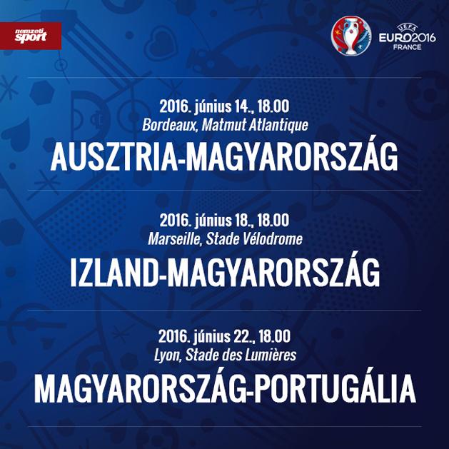 Párizsban megtartották a 2016-os labdarúgó Európa-bajnokság sorsolását. A magyar csapat ellenfelei: Portugália, Izland és Ausztria. Az már biztos, hogy a magyar csapat Bordeaux-ban kezd június 14-én, majd következik egy marseille-i mérkőzés, végül Lyonban zárjuk a csoportot.