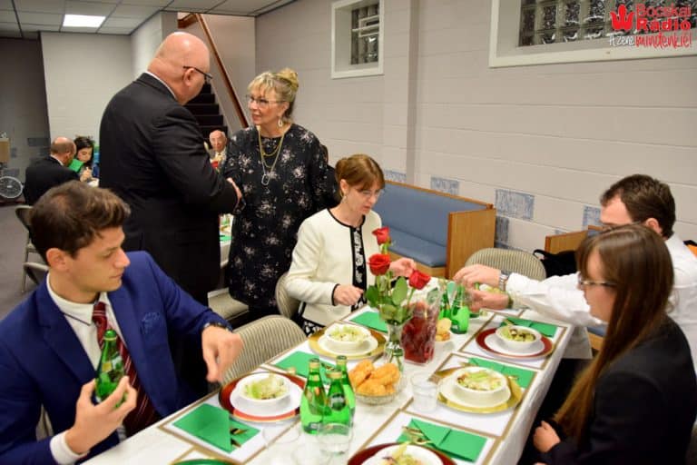 A program után ünnepi vacsorával fogadtak mindenkit az alagsori ebédlőteremben.