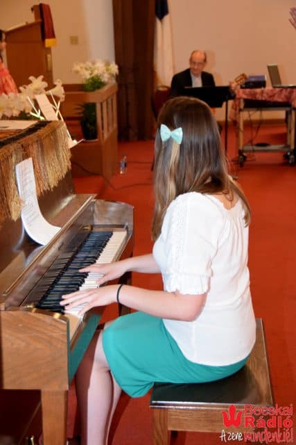 A missziós beszámoló után a lelkipásztor néhány jelenlévőt búzdított, hogy egy cigány szerzőtől származó, ifjúsági dalt közösen énekeljenek el.